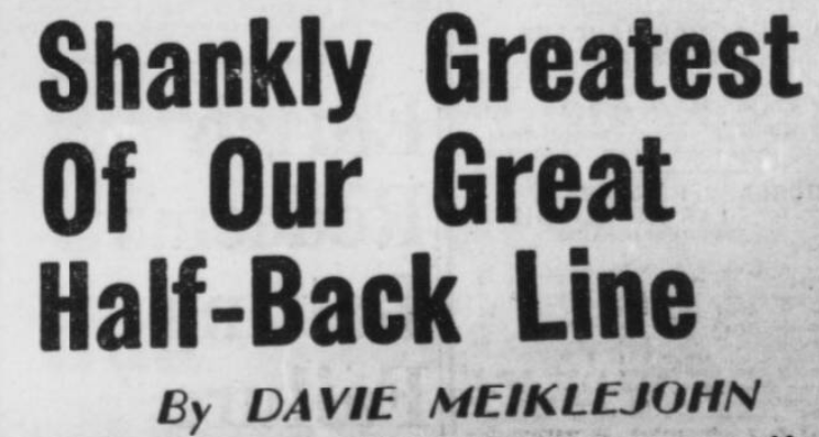 Man of the match was Shankly. He was here, there and everywhere, keeping the celebrated Bryn Jones in almost complete subjugation (reported The Scotsman). Bryn Jones had recently been signed from Wolves by Arsenal for a world recored fee. The words that would have meant the most to Shankly, however, came from Davie Meiklejohn of the Daily Record. The ex-Rangers man had been Shankly's boyhood hero: